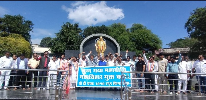 भोपाल : दिनांक 02/11/25 : डा बाबासहाब आंबेडकर जयंती मैदान, तुलसी नगर, भोपाल में *बौद्ध समाज व्दारा डा बाबासहाब आंबेडकर जी के प्रतिमा के समक्ष बुद्ध गया महाबोधि महाविहार मुक्त करने बी टी एक्ट 1949 रद्द करने की मांग को लेकर प्रदर्शन किया* गया तथा डा बाबासहाब आंबेडकर संयुक्त जयंती समारोह समिति के *अध्यक्ष रामु गजभीये व्दारा प्रधानमंत्री नरेन्द्र मोदी जी को एक ज्ञापन भेजा गया*। प्रदर्शन करनेवाले बौद्ध समाज के वरिष्ठ नेता *डा मोहनलाल पाटील, उदयभान चवरे, दलित बन्सोड, चिंतामन पगारे, वामन जंजाले, दिलिप मस्के, विजय कुमार, बाबुराव ढोने, जयंत जाधव* के साथ रामेश्वर गजभीये, इंन्दुताई पाटील, वर्षा दामले, ए आर गोलाईत, भास्कर सालवे,सतिस सोमकुवर, अशोक वंजारी, दिलिप बागडे, दिपक गवई, विजय सोनवनने, रवि सातदिवे, ए आर आनंद, दिलिप मोरे, एच एल गोलाईत, विनोद बागुल,विधान सालवे, किशोर वंजारी, बाबा बागुल, गोकुल लोखंडे, चंद्रमनी गजभीये आदि उपस्थित थे।
