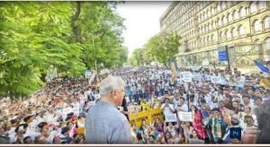 आम आदमी पार्टी के नेताओ ने मिठाई बाट कर जश्न मनाया